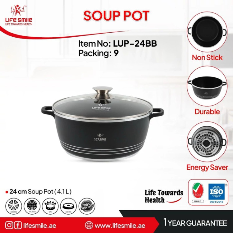 قابلمه نچسب سایز 24 Life Smile انتخابی عالی برای پختوپز روزمره در آشپزخانههای خانگی و حرفهای است. طراحی جمعوجور، دستههای راحت، و روکش چندلایه نچسب باعث میشود غذا بدون چسبیدن و با مصرف حداقل روغن پخته شود. همچنین کف ضخیم و انرژیکارآمد آن باعث پخش یکنواخت گرما و کاهش مصرف انرژی میگردد.